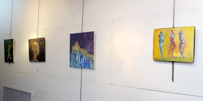 أعمال فنية تشكيلية متنوعة جمعت اربعة عشر طالبا وخريجا من كلية الفنون الجميلة بدمشق في معرض فني افتتح مساء اليوم في ثقافي ابو رمانة.