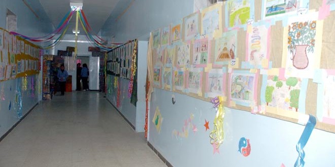 نظمت اليوم مدرسة الشهيد منير قصوعة ببلدة قنوات في السويداء معرضا فنيا تخليدا لروح الشهيد المدرس خلدون رشيد دنون مدير المدرسة السابق.