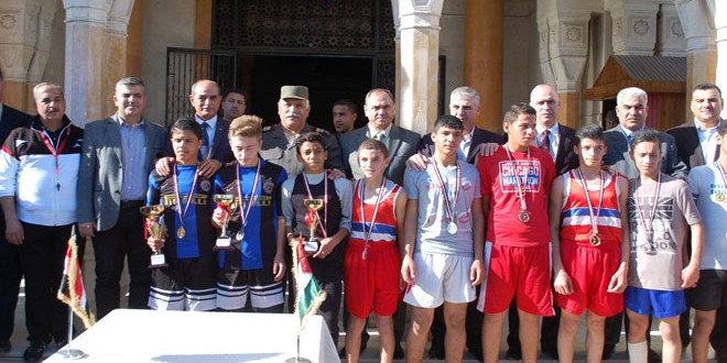 كرمت مديرية تربية حماة اليوم الفائزين الأوائل الثلاثة من مراحل التعليم الأساسي الحلقة الثانية المشاركين في سباق الضاحية لطلاب مختلف مدارس المدينة الذكور.
