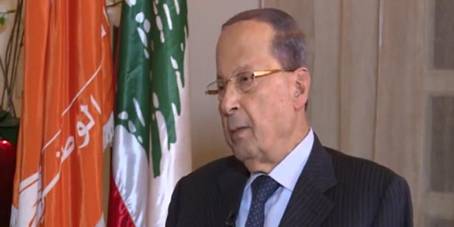 وقال عون في مقابلة مع قناة روسيا اليوم بثت الليلة الماضية: “إننا ندعم الدول التي تحارب الإرهاب وخاصة روسيا التي نبارك جهودها ونحتفظ بشعور إيجابي تجاهها وتجاه شعبها الذي يقدم خدمة وتضحية كبيرة من أجل المنطقة” مشيرا إلى أن روسيا لا تتدخل في شؤون لبنان بل تحاول مساعدته دائما ولم تضغط على أي قوى لاتخاذ موقف محدد.