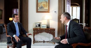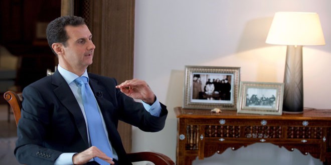 وأشار الرئيس الأسد إلى أن روسيا تدعم الحكومة السورية لأنها تدعم القانون الدولي والاستقرار في المنطقة والعالم بأسره أما الولايات المتحدة فإنها تسعى دائما إلى الهيمنة على العالم.. ولأن سورية مستقلة فإن أمريكا لا تقبل بوجود بلد يقول لها.. لا.