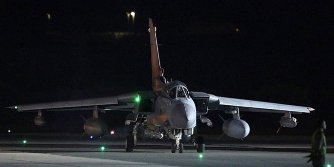 أعلنت وزارة الدفاع البريطانية أن طائراتها شنت صباح اليوم أولى ضرباتها الجوية على مواقع مفترضة لتنظيم “داعش” الإرهابي في سورية دون أن توضح نتائج تلك الضربات التى جاءت بعد ساعات على موافقة البرلمان البريطاني على انضمام بريطانيا الى تحالف واشنطن المزعوم ضد التنظيم الارهابي.