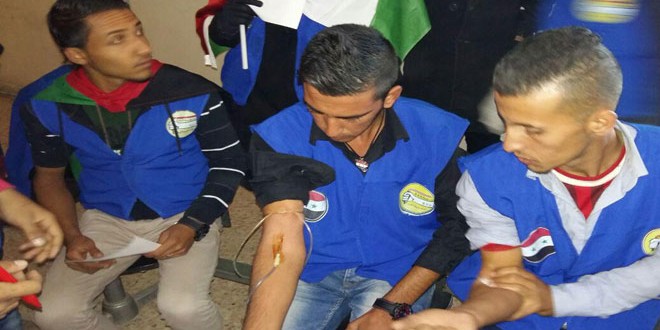 ونظمت رابطة مدينة الحسكة لاتحاد شبيبة الثورة منذ بداية العام الحالي 5 حملات تبرع بالدم دعما لجرحى الجيش والقوات المسلحة.