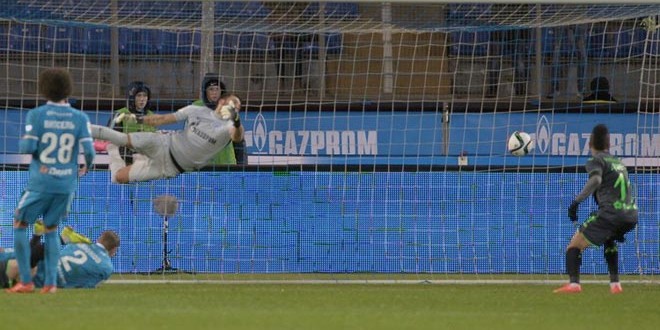 وسجل الأوكراني ألكسندر زينتشينكو هدف السبق للضيوف في اللقاء الذي أقيم على ملعب بتروفسكي في مدينة بطرسبورغ لكن المدافع الأرجنتيني إيزيكيل غاراي أنقذ زينيت من الهزيمة في الدقيقة 86 بعد 5 دقائق من إهدار زميله البلجيكي اكسيل فيتسيل ضربة جزاء.