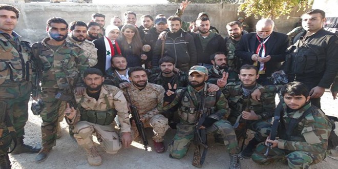 وخلال زيارة المشاركين في الفعالية للمقاتلين في حي جوبر عبر عدد من عناصر الجيش عن تقديرهم لهذه المبادرة مؤكدين صمودهم واستمرارهم في تنفيذ مهامهم حتى الشهادة أو تحقيق النصر على الإرهاب التكفيري الذي يحاول النيل من الأمن والاستقرار في سورية.
