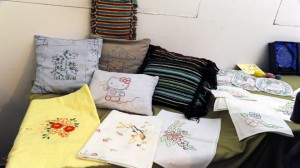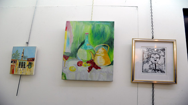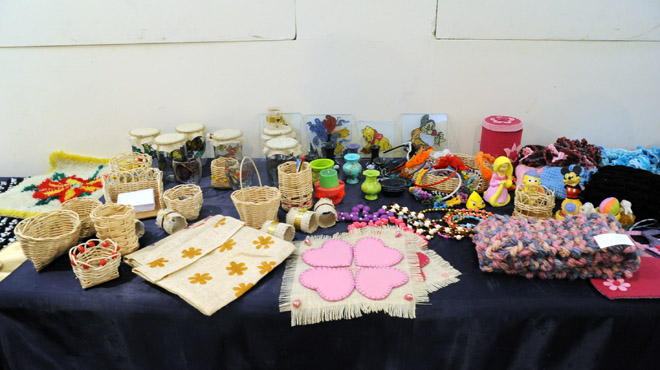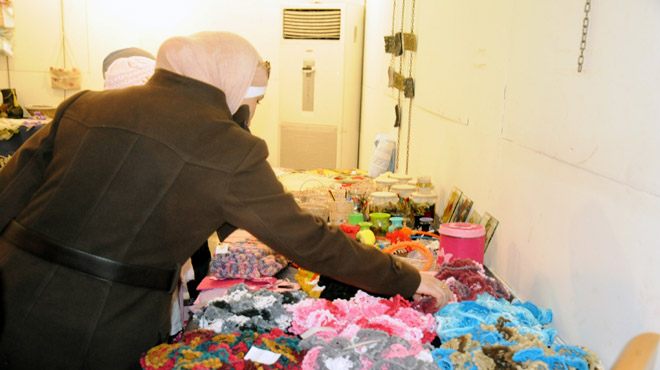 وفي ركن خاص بالمعرض قدمت الشابة أماني زكار من ذوي الاحتياجات الخاصة مجموعة من أعمالها اليدوية المنوعة من التطريز والفخار والقش والرسم الزيتي مشيرة إلى أنها تسعى “لتنمية موهبتها من خلال دورات تدريبية في مركز أدهم اسماعيل للفنون التشكيلية”.