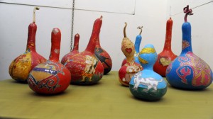أما الفنانة دعاء البسطاطي قدمت لوحات مميزة وأعمالا يدوية تزينية على اليقطين أوضحت من خلالها أن الإعاقة “لا تعني اليأس بل تشكل تحد من اجل النجاح والابداع” حيث تقول “عندما فقدت يدي طورت مهاراتي للرسم بقدمي واستطعت اتمام دراستي في كلية الفنون الجميلة وتخرجت منها العام الماضي واحضر لمعرضي الفردي الاول قريبا”.