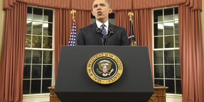 قال الرئيس الأميركي باراك أوباما إن الهجوم المسلح الذي نفذه زوجان في كاليفورنيا قبل أيام وأوقع 14 قتيلا كان “عملا إرهابيا” متعهدا بـ “ملاحقة الإرهابيين أينما كانوا دون الانجرار إلى حرب برية في سورية والعراق”.