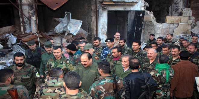 وقام الأمين القطري المساعد للحزب بجولة اطلع خلالها على تحصينات الإرهابيين خلال محاصرتهم للمطار التي تهاوت أمام ضربات بواسل الجيش العربي السوري كما زار عددا من النقاط العسكرية ومجموعات الدفاع الشعبية في عدد من المناطق والأحياء في حلب وريفها.