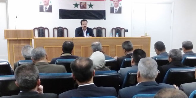 جاء ذلك خلال اجتماع تتبع تنفيذ المشاريع الاستثمارية بالمحافظة مع الجهات المعنية ومديري المؤسسات العامة اليوم في مديرية الصحة بمدينة البعث حيث طلب المحافظ من المشاركين تقديم خطة عمل بالأعمال المنجزة ونسب التنفيذ للمشروعات الاستثمارية لكل مديرية خلال العام الحالي والصعوبات والمعوقات التي واجهت العمل وتقييم عمل المدير والكادر الإداري ومكافأة المميزين ومحاسبة المقصرين.