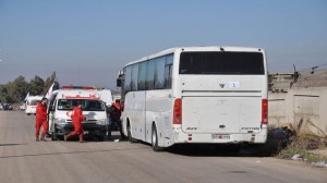 وأوضح المحافظ أن المرحلة الأولى ستنتهي نهاية الأسبوع القادم وتضمنت اليوم خروج نحو 720 شخصا منهم 300 مسلح من الراغبين بالخروج و “100” عائلة أي بحدود ” 400″ امرأة وأطفال ومدنيين و” 20 ” من الجرحى والحالات التي تحتاج إلى مساعدة منها “مرضى وشلل” لافتا إلى أن مديرية الصحة تتولى علاجهم بالتعاون مع الهلال الأحمر العربي السوري وبعضهم سيتجه إلى المشافي السورية والبعض سيغادر مع القافلة.