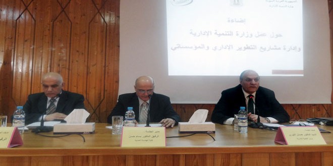 وأكد وزير التنمية الادارية الدكتور حسان النوري ان عملية التنمية وإعادة الاعمار تتطلب تضافر جهود المؤسسات والافراد والكوادر والكفاءات السورية والبدء باعادة اعمار البشر والمؤسسات قبل البنى التحتية داعيا الى رصد نقاط الضعف داخل المجتمع والمؤسسات ووضع الشخص المناسب في المكان المناسب وتنفيذ برامج تنموية لصناعة كوادر بشرية متميزة.