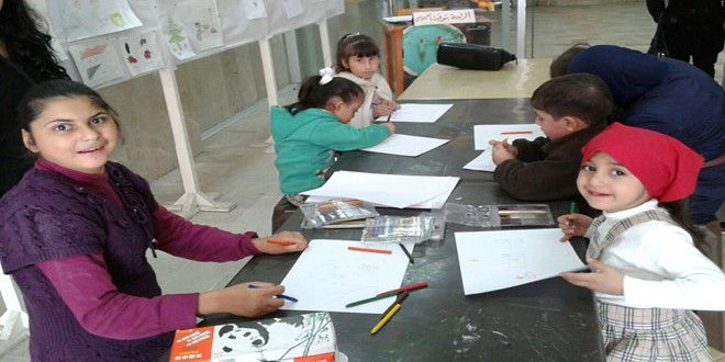 بدورها بينت مديرة جمعية المكتبة العمومية للأطفال في اللاذقية عدوية ديوب ان المكتبة ساهمت بتقديم مساحة حرة للأطفال من ذوي الاحتياجات الخاصة واقرانهم الاصحاء وكان الموضوع مفتوحا امامهم للتعبير عن طريق الخط واللون والمساحة عن مشاعرهم واحاسيسهم وافكارهم وما يجول بخاطرهم امام الاقران في جو تفاعلي مريح بحضور المشرفين من قبل جمعية المكتبة.