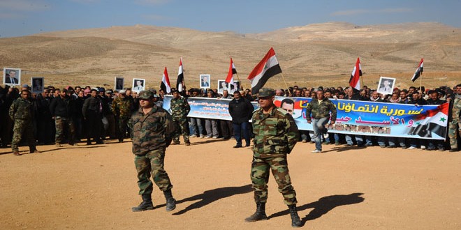 ودعا المتخرجون رفاقهم في البلدات والقرى للالتحاق بأقرب دورة لاكتساب مهارات تساعدهم في حماية قراهم وبلداتهم التي تشكل النواة الأولى للوطن الأم سورية ويكونوا رديفا لبواسل الجيش العربي السوري للتصدي للإرهاب وداعميه.