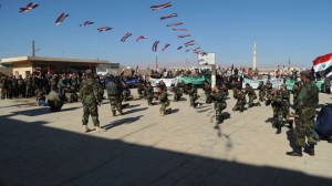 في إطار الدورات التدريبية التأهيلية في ريف دمشق تم اليوم تخريج الدفعة الثالثة من فصائل الحماية الذاتية لتكون رديفاً للجيش العربي السوري في حربه على الإرهاب التكفيري والدفاع عن أرض الوطن.