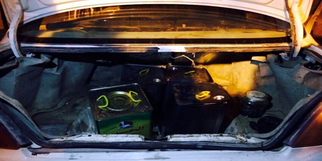 وذكر مصدر في المحافظة لمراسل سانا أنه بناء على معلومات دقيقة تم رصد سيارة نوع “سكودا” وضبطها قبل دخولها إلى مدينة جبلة وبداخلها صواعق ومواد متفجرة مخبأة داخل صفائح تخصص عادة لنقل الزيوت والسمن وإلقاء القبض على شخصين كانا بداخلها.