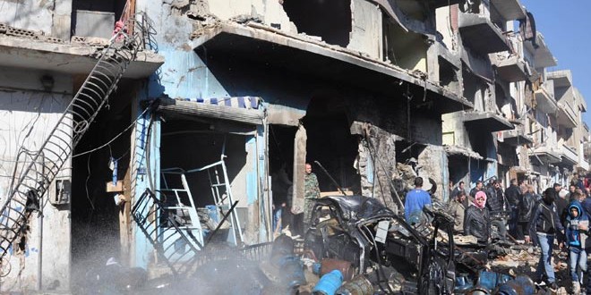 وكان ارتقى اليوم 18 شهيدا وأصيب عشرات الاشخاص بجروح جراء تفجير إرهابي بسيارة مفخخة في حي الزهراء السكني وسط مدينة حمص.