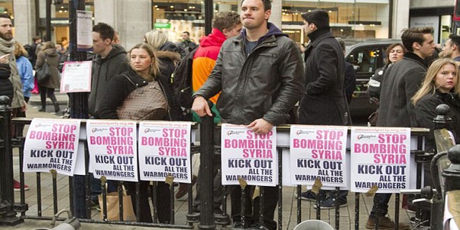 وكان مئات الأشخاص تظاهروا أواخر الشهر الماضي في لندن مطالبين مجلس العموم البريطاني بعدم دعم مشاركة بريطانيا في غارات جوية ضد تنظيم “داعش” الإرهابي في سورية لكن المجلس وافق على هذه الخطوة وصوت 397 مقابل 223 صوتا.