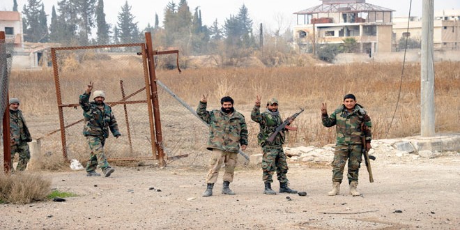 حققت وحدات من الجيش والقوات المسلحة انجازا مهما في الغوطة الشرقية بسيطرتها الكاملة على بلدة مرج السلطان ومطارها العسكري ملحقة هزيمة جديدة بالتنظيمات الإرهابية لتكون نقطة متقدمة لمواصلة عملياتها ودحر الإرهابيين من كامل الغوطة الشرقية.