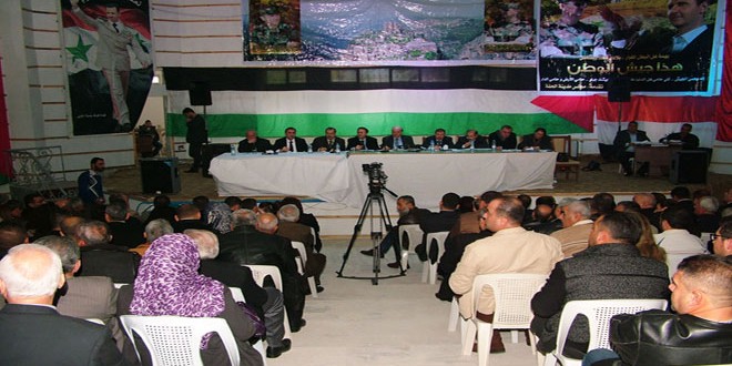 ونوه عضو القيادة القطرية لحزب البعث رئيس مكتب التنظيم يوسف أحمد بصمود الشعب السوري في الحرب التي يتعرض لها وحتمية انتصاره على التكفيريين مؤكدا ان سورية تقف في وجه المخططات الرامية لتجزئة المنطقة واسقاطها خدمة لمخططات الكيان الصهيوني وأمريكا والغرب.