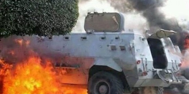 أصيب مجند مصري بجروح خلال محاولة عناصر إرهابية استهداف مدرعة على طريق العريش شمال سيناء بعبوة ناسفة.