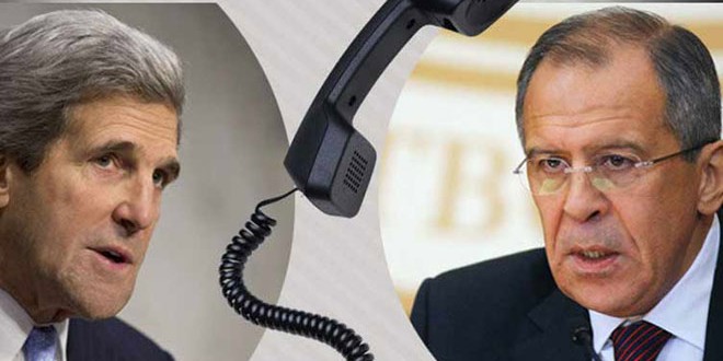 بحث وزيرا الخارجية الروسي سيرغي لافروف والأمريكي جون كيري في اتصال هاتفي اليوم ضرورة الالتزام بمبدأ التوافق داخل المجموعة الدولية لدعم سورية.