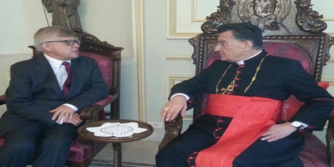 بحث البطريرك الماروني الكاردينال مار بشارة بطرس الراعي مع السفير الروسي في لبنان الكسندر زاسبكين اليوم العلاقات بين لبنان وروسيا والأوضاع في المنطقة.