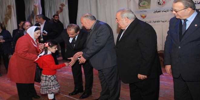 بعد ذلك قام عضو القيادة القطرية لحزب البعث العربي الاشتراكي رئيس مكتب الفلاحين الدكتور عبد الناصر شفيع والمحافظ وأمين فرع حلب لحزب البعث أحمد صالح إبراهيم بتكريم عدد من ذوي الاحتياجات الخاصة لتميزهم في مجالات الدراسة والتمثيل والغناء والفصاحة والخطابة والرياضة وقدموا لهم الهدايا الرمزية.