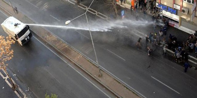 استخدمت شرطة نظام رجب اردوغان اليوم مدافع المياه والقنابل المسيلة للدموع لتفريق آلاف المتظاهرين في مدينة دياربكر في جنوب شرق تركيا احتجاجا على العملية العسكرية الوحشية التي تشنها قوات اردوغان في المدينة.