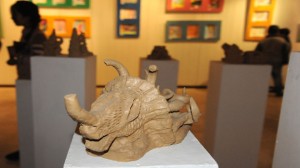 وأوضح النحات هشام المليح الذي شارك بنحت شخصية الفنان الوهيبي بطريقة واقعية انه “شارك أيضا بمنحوتة خشبية أخرى وأطلق عليها اسم “سورية” ربة الشمس الأكبر وإله شروق الشمس وغروبها مستوحاة من المثيولوجيا الهندية”.