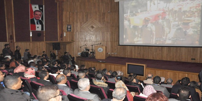 وأشار عيسى إلى صمود سورية في مواجهة الحرب الكونية الإرهابية التي تتعرض لها بفضل تكاتف وتلاحم شعبها وجيشها للحفاظ على وحدتها وبقائها عزيزة شامخة مؤكدا أن سورية تدخل اليوم في منعطف الانتصار من خلال دماء الشهداء وانتصارات أبطال الجيش العربي السوري.