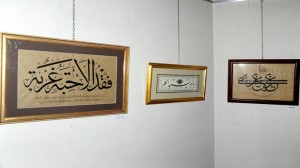ويضم المعرض 52 عملا بين اللوحة والمنحوتة الخزفية ففي مجال الخط العربي تنوعت الأعمال المعروضة بين الخطوط المعروفة من نسخ وجلي الديواني والثلث والعثماني وغيرها مع وجود لوحات ضمت الزخرفة والرسم على الورق كما أن بعض اللوحات الحروفية كانت حاضرة بقوة عبر حجوم كبيرة.
