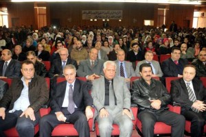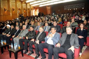 نظم الاتحاد الوطني لطلبة سورية وفرع جامعة دمشق لحزب البعث العربي الاشتراكي لقاء اليوم على مدرج الصيدلة في الجامعة حول سبل تحصين وحماية الشباب في الحرب التي تتعرض لها سورية ودورهم في الدفاع عن الوطن وإعادة إعماره وبنائه.