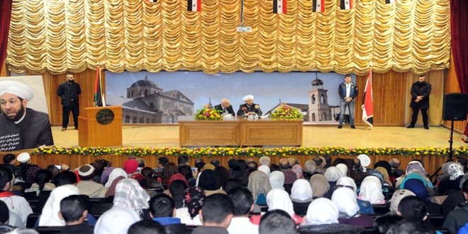 ونوه سماحة المفتي العام للجمهورية الدكتور أحمد بدر الدين حسون بصمود الشباب السوري وعقيدتهم وإيمانهم الثابت في وجه الحرب التي تتعرض لها سورية ووعيهم لكل ما حشده العالم من طاقات إعلامية ونفسية وفكرية وإيديولوجية لتدميرهم فكرياً وثقافياً وعلمياً ودينياً مؤكداً أن سورية ستبقى دولة تحافظ على دين وقيم وكرامة شعبها وحقوقه.