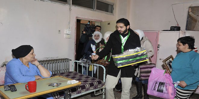 في مبادرة إنسانية وطنية تزامنا مع مناسبتي عيد المولد النبوي الشريف وعيد الميلاد المجيد زار مجموعة من طلاب وطالبات مجمع الفتح الإسلامي لمعهد الشام العالي دار الكرامة للعجزة والمسنين بدمشق ووزعوا على المقيمين فيها هدايا رمزية وحقائب تضم مستلزمات لفصل الشتاء .