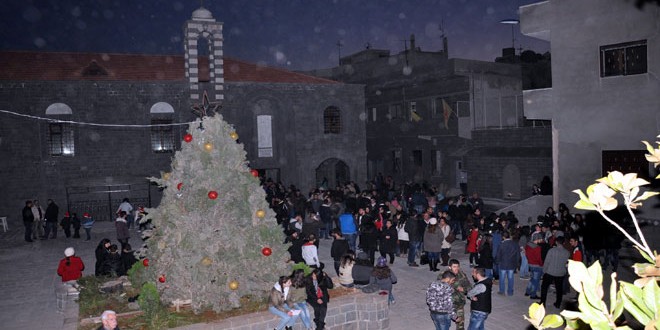 أقامت كنيسة أم الزنار في مدينة حمص القديمة أمسية موسيقية ميلادية تضمنت تراتيل دينية احتفالا بإعادة المحبة والأمل لمستقبل سورية وإضاءة شجرة الميلاد وافتتاح معرض لرسوم الاطفال بمشاركة 50 طفلا وطفلة.
