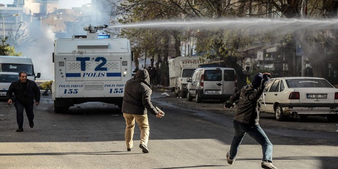 وذكرت وكالة الصحافة الفرنسية أن الشرطة التركية أطلقت الغاز المسيل للدموع واستخدمت خراطيم المياه ضد المتظاهرين عندما حاولوا الوصول إلى منطقة “سور” التي تشهد اشتباكات بين الأمن التركي وسكان المنطقة.