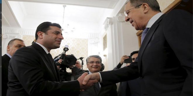 وقال لافروف خلال لقائه رئيس حزب الشعوب الديمقراطي التركي صلاح الدين دميرتاش في موسكو اليوم.. “في إطار مساعي المجتمع الدولي لتسوية الأزمة في سورية من الضروري توحيد جهود جميع الأطراف التي تهدف إلى محاربة الإرهاب ونحن نعرف أن من بين أولئك الذين يقاتلون داعش والتنظيمات الإرهابية الأخرى الأكراد في العراق وسورية بالتعاون مع الجيشين السوري والعراقي”.