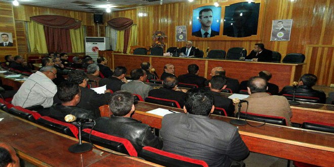 واستعرض عدد من رؤساء أقسام الدوائر الخدمية في بلدتي الهول وتل حميس واقع البنى التحتية لهما والدمار الذي لحق ببعضها نتيجة الإعمال الإرهابية ولا سيما بعض المدارس وشبكات المياه والكهرباء والاتصالات .