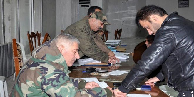 سلم اليوم 86 مطلوبا من محافظات دمشق وريفها وحلب أنفسهم للجهات المختصة لتسوية أوضاعهم.