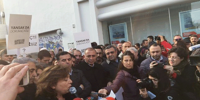 تظاهر مئات الاعلاميين الاتراك في مدينة اسطنبول اليوم تنديدا بسياسات كم الافواه التي ينتهجها نظام رجب اردوغان وتعبيرا عن تضامنهم مع زملائهم المعتقلين وفي مقدمتهم رئيس تحرير صحيفة جمهورييت ومدير مكتب الصحيفة في انقرة واللذان تم اعتقالهما قبل شهر.