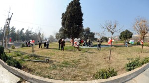 وتضمنت الفعالية زراعة أشجار الخوخ والجوز والمشمش فى حين قدمت فرقتا “أورنينا” و”لمة وطن” حفلا غنائيا ومسابقات متنوعة شملت توزيع هدايا لأجمل زينة تم تعليقها على الأشجار التي زرعت فى الحديقة.