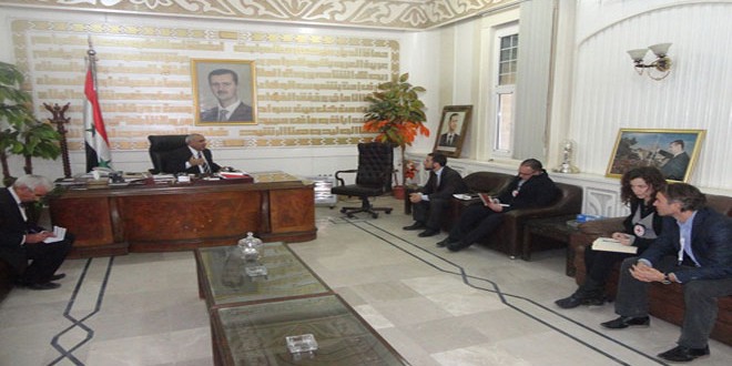 بحث محافظ الحسكة محمد زعال العلي مع مسؤول أنشطة اللجنة الدولية للصليب الأحمر في المنطقة الشمالية الشرقية ساشا كوستر وعدد من المعنيين باللجنة سبل تطوير مجالات التعاون بين الجانبين .