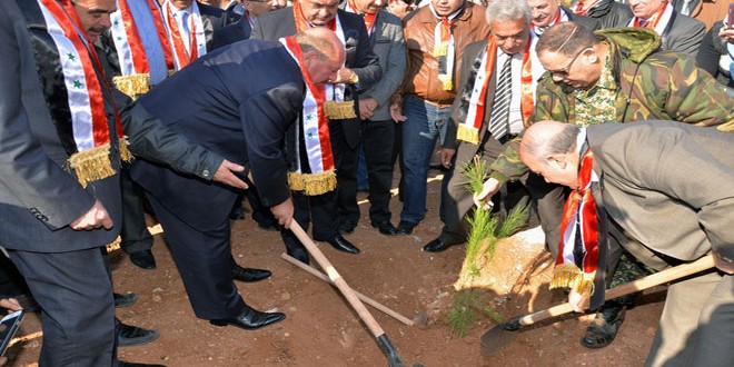 وبين محافظ حلب الدكتور محمد مروان علبي أن الاستمرار بزراعة الاشجار رمز الخير والعطاء تأكيد على تمسك السوريين بوطنهم والتجذر بأرضه ومواصلة الدفاع عنه ضد كل الأعداء والإرهابيين.