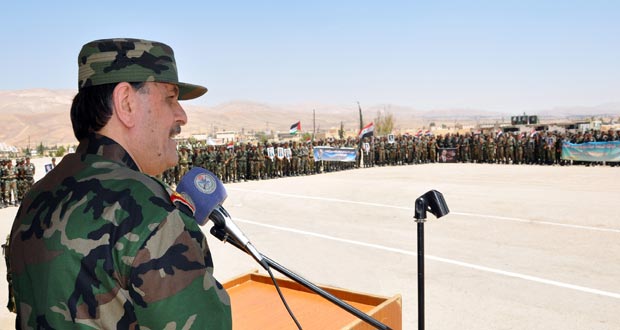 الأعاصير والتحديات التي تعصف بالمنطقة والعالم منوها ببطولاتهم التي يسطرونها في كل يوم وبعملهم الدوءوب وهم بعيدون عن عائلاتهم لينعم الوطن بالأمن والاستقرار كما أشار إلى أن النصر على العصابات الإرهابية التكفيرية بات قاب قوسين أو أدنى بعد انهيار معنوياتها جراء الضربات المتتالية التي يوجهها إليها رجال الجيش العربي السوري والتقى قادة الوحدات والقطع وزودهم بتوجيهاته متمنيا لهم التوفيق في تنفيذ مهامهم.