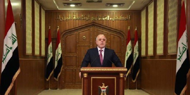 وقال العبادي في كلمة للعراقيين اليوم ان مدينة الرمادي عادت الى حضن العراق وستعود كل مدينة عراقية الى حضن الوطن الكبير مبينا ان الجيش العراقي استعاد الرمادي والحق هزيمة قاسية بتنظيم “داعش” الإرهابي والمتحالفين معه وهو سيستمر في سحق التنظيم حتى تحقيق كامل الاهداف بتحرير كل مدينة وقرية في العراق .
