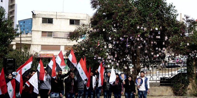 وأشار عضو المكتب التنفيذي للاتحاد عمر الجباعي في تصريح لمراسل سانا إلى أن هذه الفعالية تمثل تحية من طلبة السويداء إلى شهداء الوطن وتأكيداً على استمرارية الحياة ومسيرة العلم والمعرفة بفضل التضحيات الجسام التي قدمها الشهداء في مواجهة الارهاب الذي ستنتصر عليه سورية بفضل صمود ووعي أبناء الوطن ودعمهم للجيش والقوات المسلحة.