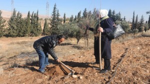 فرع نقابة المهندسين بمحافظة دمشق ينفذ حملة تشجير في نادي المهندسين بمنطقة الديماس بمناسبة عيد الشجرة
