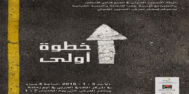 تستضيف صالة المعارض في المركز الثقافي العربي في أبو رمانة عند الساعة الرابعة من عصر يوم الأحد القادم معرضا للتصوير الضوئي بعنوان “خطوة أولى” يقيمه الاتحاد العام للتشكيليين الفلسطينيين بالتعاون مع رابطة التصوير الضوئي في تجمع فناني فلسطين ومؤسسة جفرا وجمعية نور للإغاثة والتنمية الشبابية.