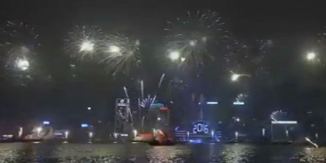 وفي هونغ كونغ حضر عشرات آلاف الأشخاص عرض الألعاب النارية على جانبي مرفأ فيكتوريا.
